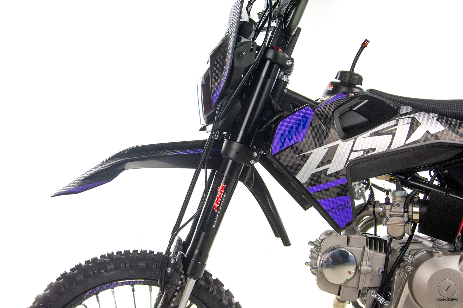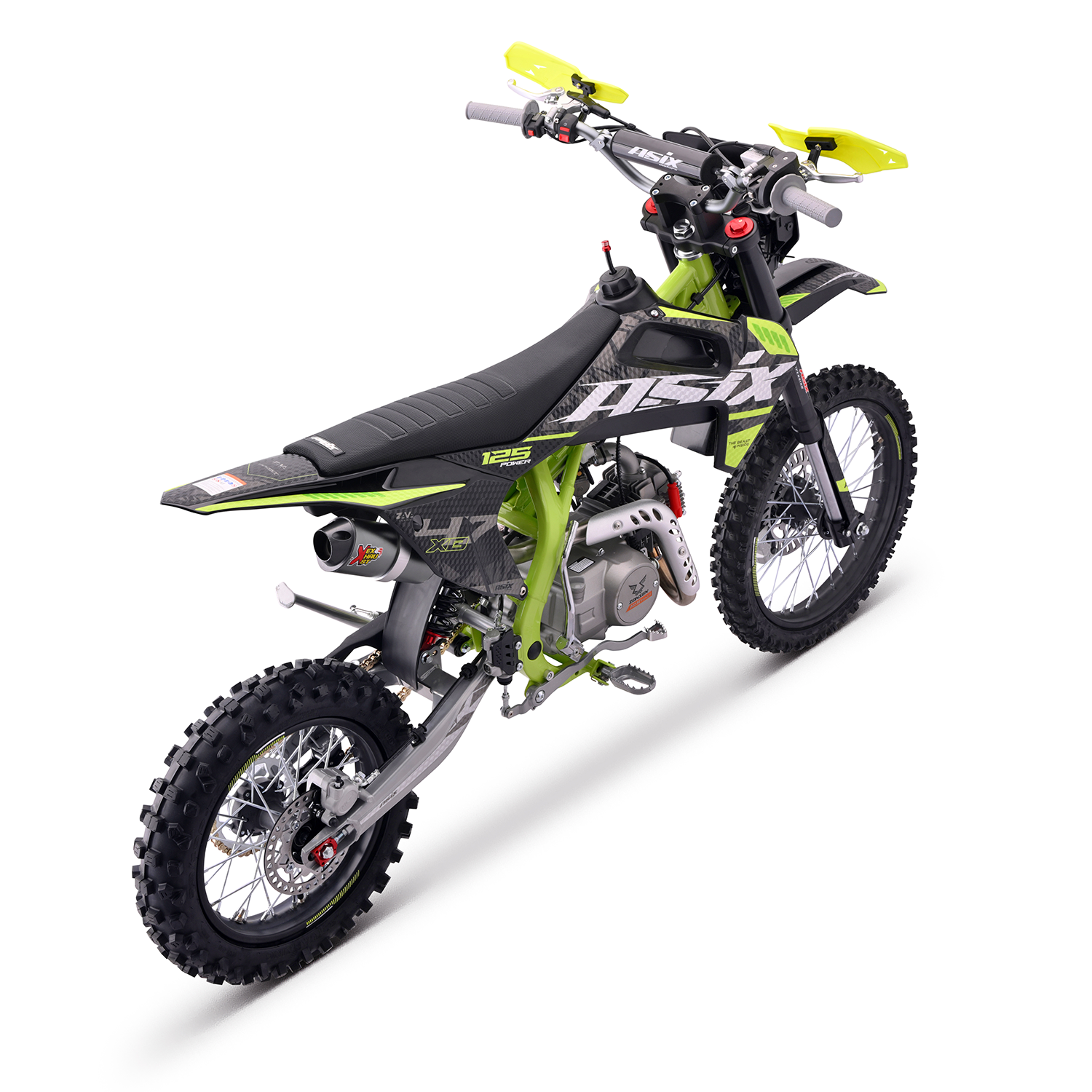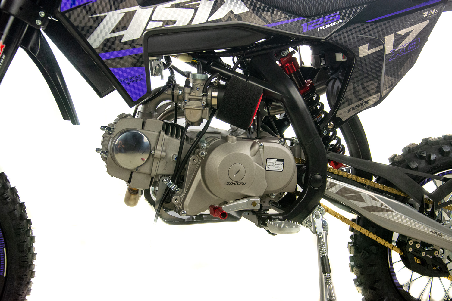 Cross Asix XB47 napędzany jest niezawodną jednostką ZONSEN o pojemności 123,7cm3. Odpalany jest na kopkę lub rozrusznik elektryczny. Przeznaczony dla młodzieży od ok. 160cm wzrostu. Solidne amortyzatory przednie w układzie upside-down oraz konstrukcja ramy dają poczucie bezpieczeństwa nawet w bardziej wymagającym terenie. Model ten wyposażony jest w licznik cyfrowy, lampę przednią, łamane klamki hamulca i sprzęgła oraz licznik motogodzin.