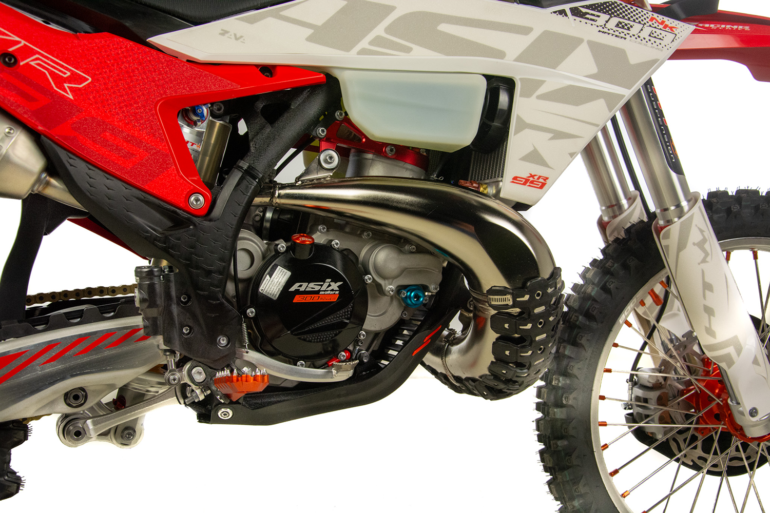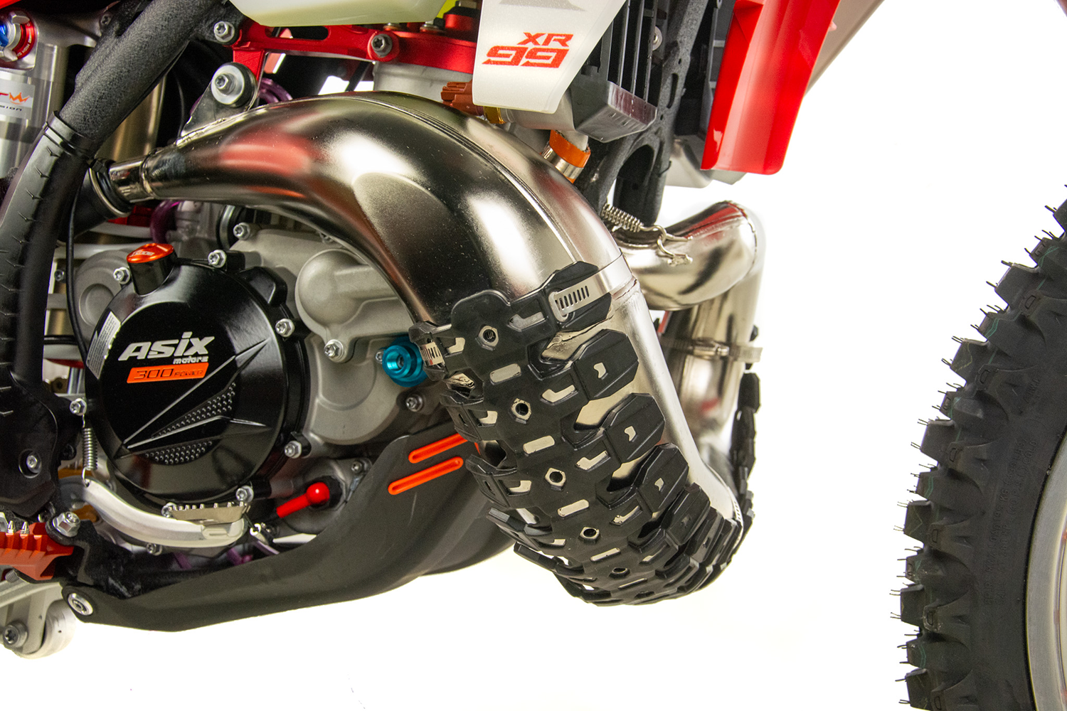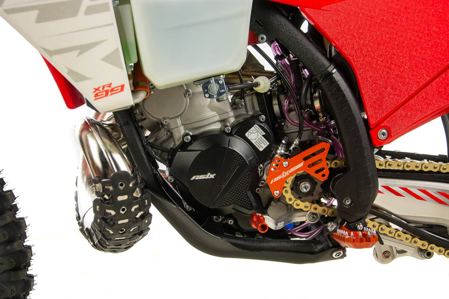 Cross z najnowszej serii pojazdów ASIX MOTORS – Racing Series. Jednostkę napędową stanowi dwusuwowy silnik NK300 generujący moc na poziomie 49KM. Silnik jest chłodzony cieczą, zestrojony z manualną 6-stopniową skrzynią biegów. Model ten został zestawiony na kołach 21/18″ i wyposażony w dwukomorowe zawieszenie HTW z regulacją. Zaletą tego zawieszenie jest bardzo płynna praca bez „dobijania”. Zarówno przednie jak i tylne zawieszenie posiada regulację charakterystyki pracy. Model ten przeznaczony jest dla młodzieży i dorosłych od ok. 180cm wzrostu. Asix XR99 posiada licznik motogodzin, gniazda USB, łamane klamki hamulca i sprzęgła, osłonę dyfuzora, osłonę pod silnikiem, handbary oraz wiele aluminiowych elementów CNC.
