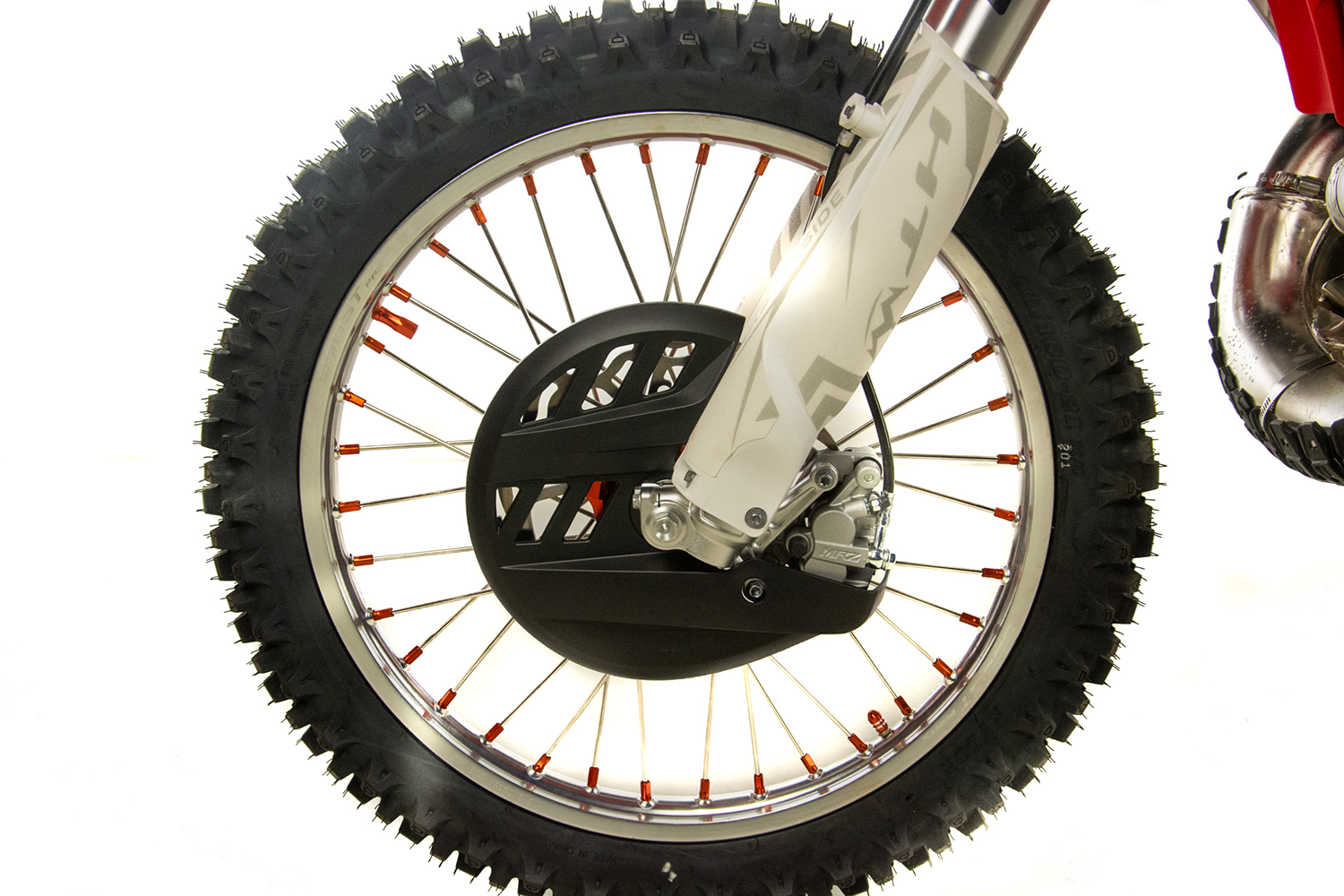 Mamy tu do dyspozycji tarczowe hamulce hydrauliczne. Motocykl otrzymał najnowsze tarcze hamulcowe wzorowane na markowych pojazdach. Klamka hamulca przedniego oraz sprzęgła są łamane w 3 kierunkach (na dól, na górę i od kierownicy) dzięki czemu unikniesz złamania klamek przy przewróceniu crossa